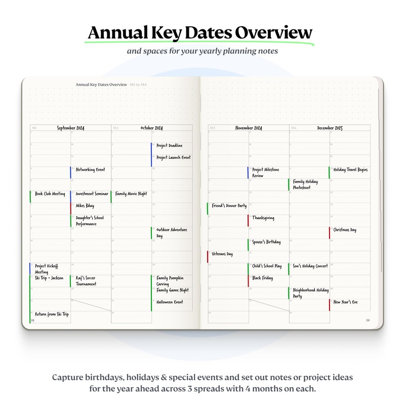 - Planner + Notebook All in 1: Annual Calendar, Notes Index, Monthly & Weekly to do list planner dashboards, 89 numbered dotted note pages for expanded task lists, notes, or sketches. All-in-one business planner, notebook and life organizer.