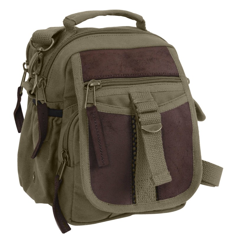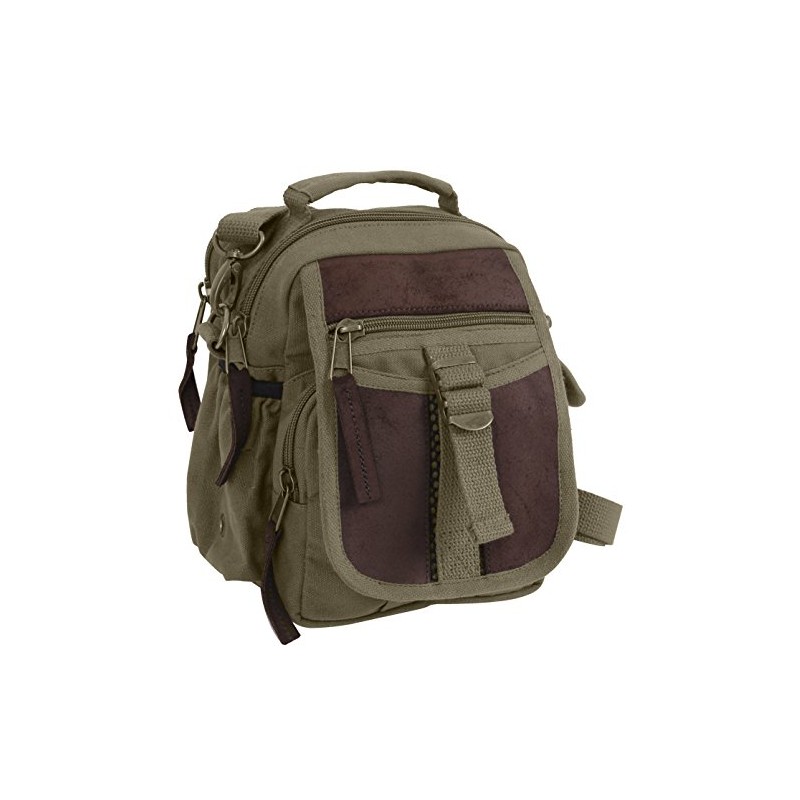Rothco Canvas & Leather Travel Shoulder Bag, Olive Drab