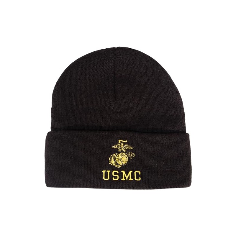 Rothco Embroidered USMC Watch Cap with Gold Eagle, Globe, & Anchor Insignia, Black