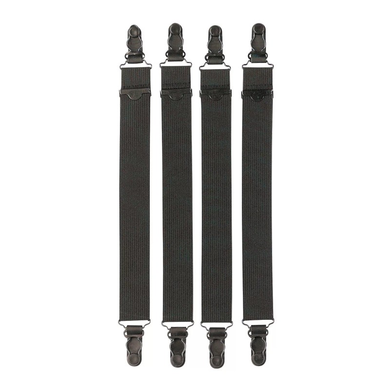 • This item is great for keeping your shirts tails tucked in after sitting or bending over.  Simply attach one end to your shirt tail, the other to your socks