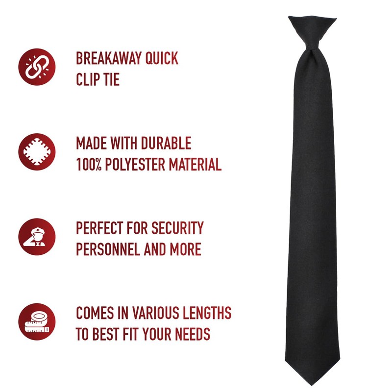 Rothco’s Police Issue Clip-On Neckties are crafted from soft yet durable 100% polyester, ensuring comfortable wear and resistance to wrinkles for years. Featuring a quick clip design with breakaway feature to prevent pulling, these ties are perfect for police, emergency response, security personnel, and more. Available in various lengths to suit individual needs, they offer professional style made easy.