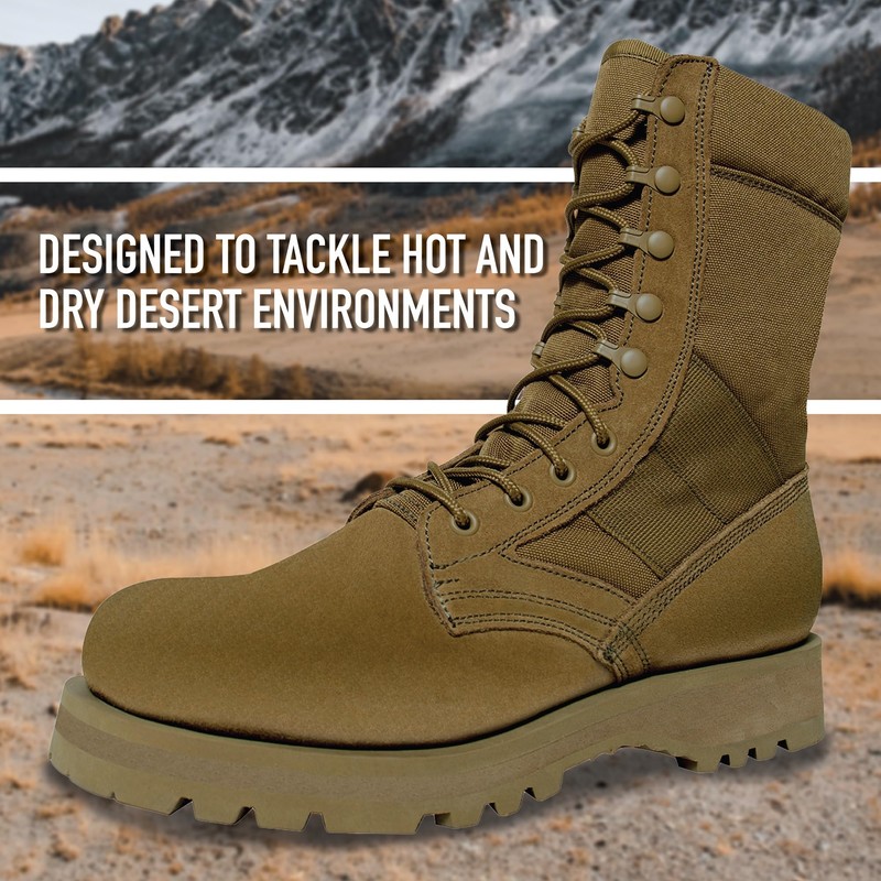 - Climate Comfort: Midsole heat barrier keeps feet cool and protected in harsh climates, making them suitable for hot and dry desert environments.