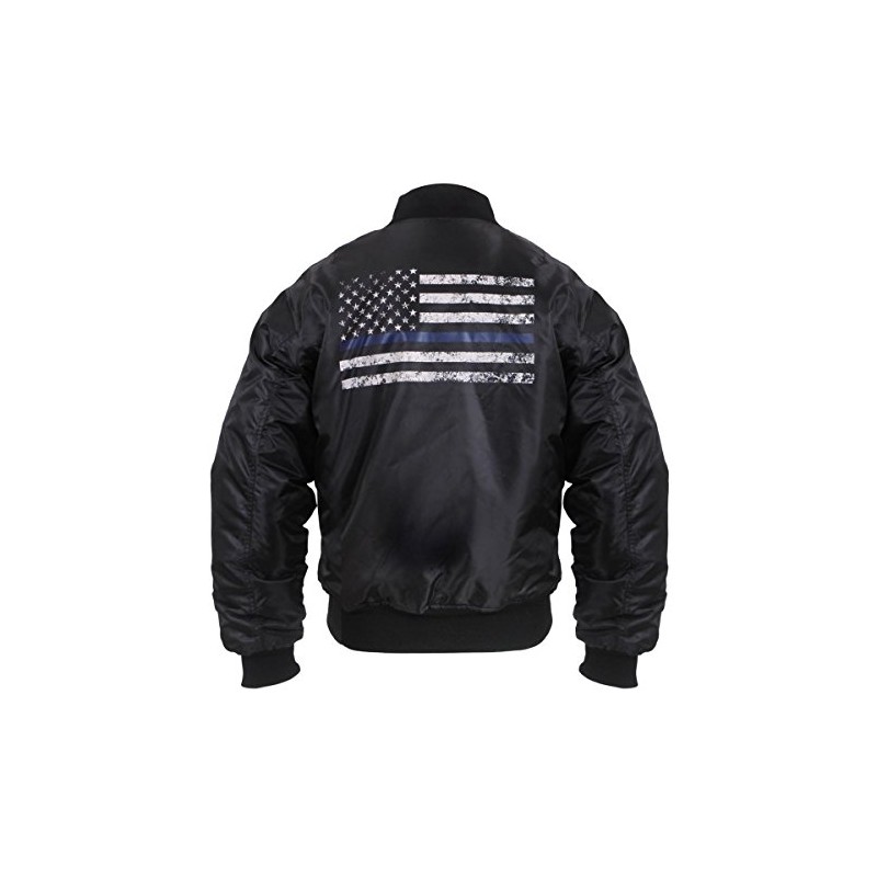 - Classic MA-1 Flight Jacket With Thin Blue Line Flag. 100% Nylon Water Repellent Outer Shell