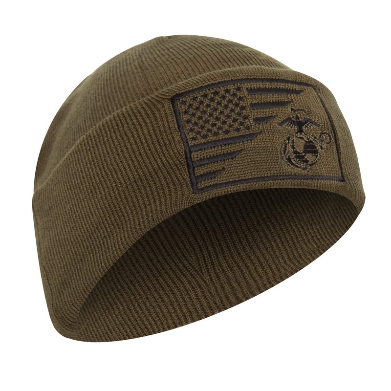 Rothco USMC Eagle, Globe and Anchor/US Flag Deluxe Fine Knit Watch Cap, Coyote Brown