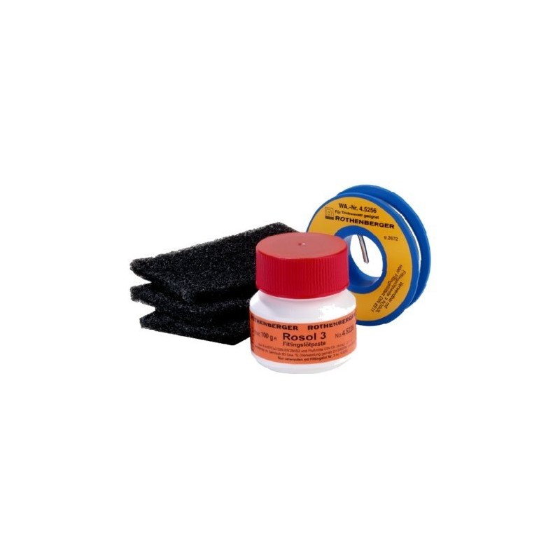 • ROTHENBERGER 45227 soft solder set for drinking water contents: fitting solder 100 g, solder paste 100 g, cleaning pads 3 pieces