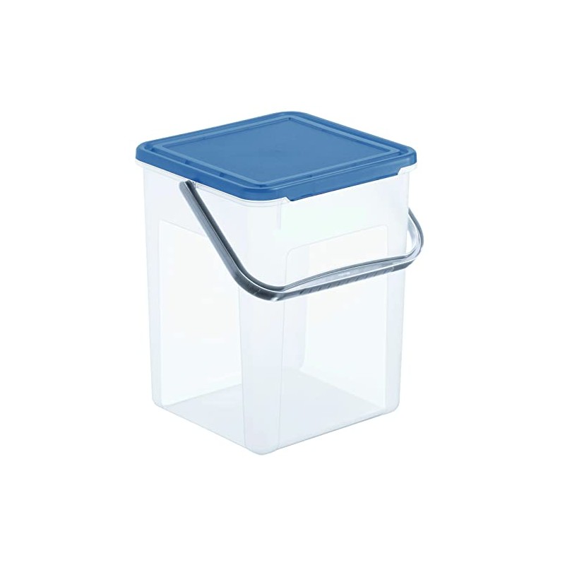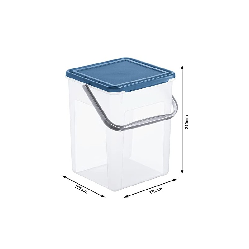 - Dimensions: 23 x 22.5 x 27.5 cm (L x W x H), volume 9 litres – sufficient for up to 5 kg washing powder – colour: transparent can, blue lid, silver handle