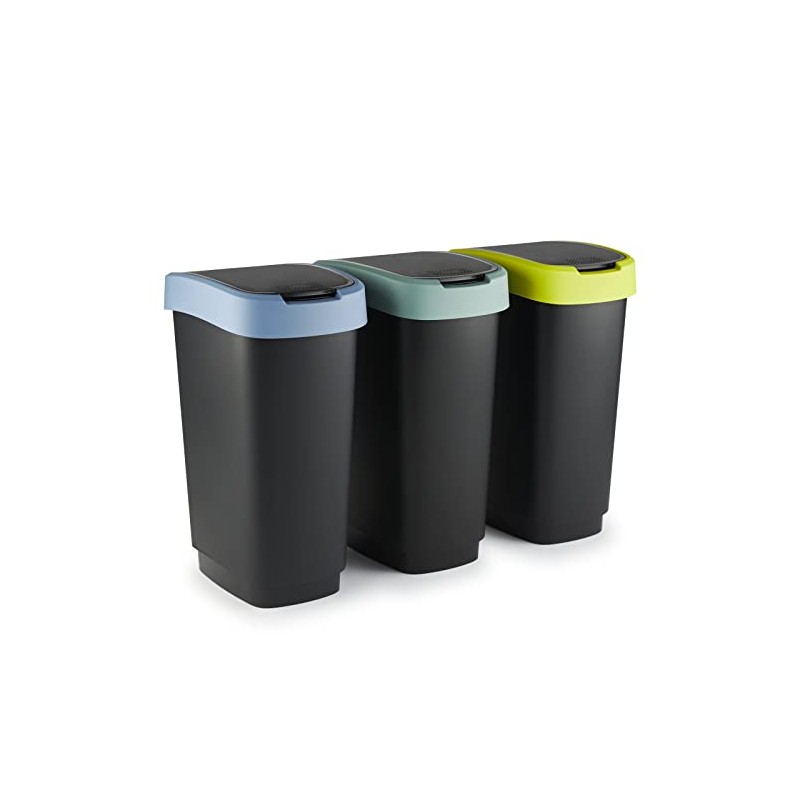 - Appearance: Rubbish bin made of high-quality recycled polypropylene (PP) plastic in black/green. Can be used as a recycling centre for multiple waste bins in different colours. Wide lid rim hides bin liners