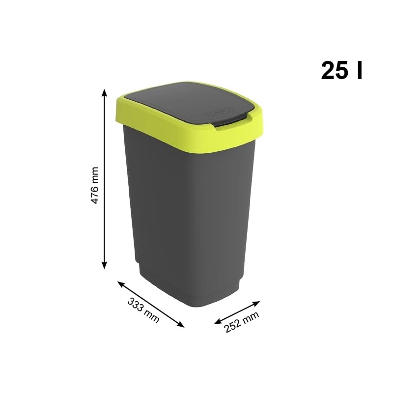 - Box contents: 1 x 25-litre bin incl. Lid with swing/folding function in green made of polypropylene (PP) plastic. Made in Switzerland