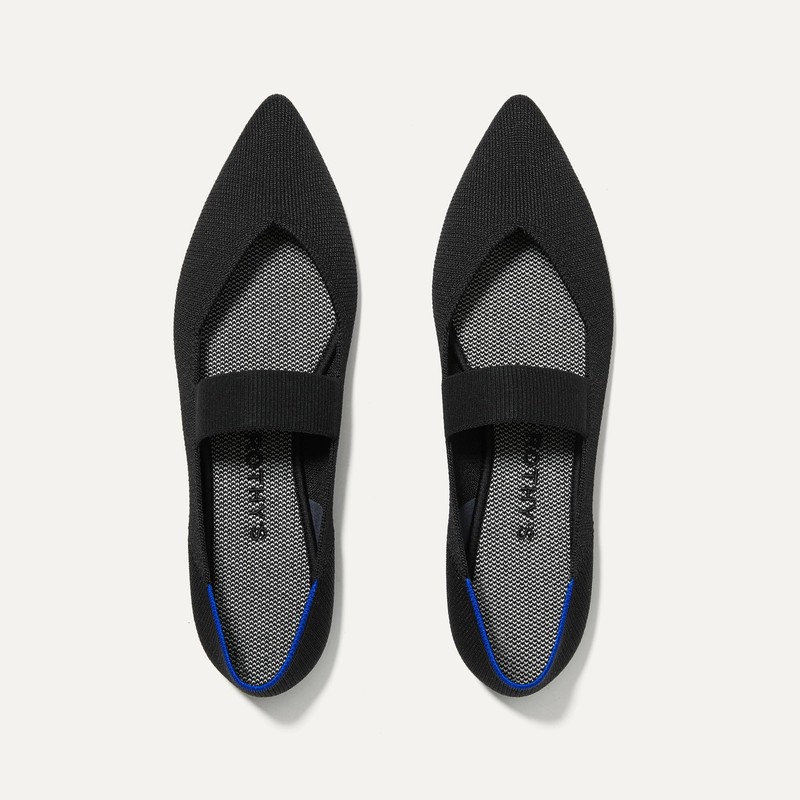 Rothy's The Point Mary Jane Women's Slip-On Shoes, Pointed-Toe Flats, Black, Made from Recycled Plastic Bottles & Machine Washable, Size 6.5