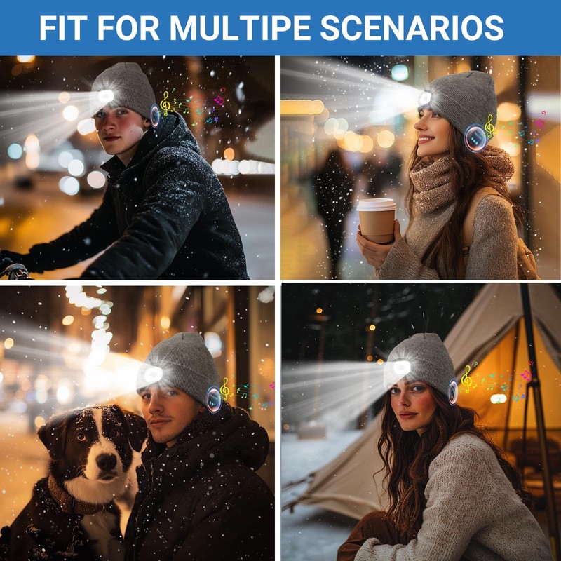 - Hands-Free LED Winter Hat: Our bluetooth beanie with 6 bright LED lights and 3 adjustable brightness settings. Up to 8 hours of using time on a single charge, this hands free LED light on the front of the hat provides illumination when needed, making it a practical choice for outdoor activities,handyman working, grilling, auto repair and home improvement, or any other activity needing hands-free lighting.
