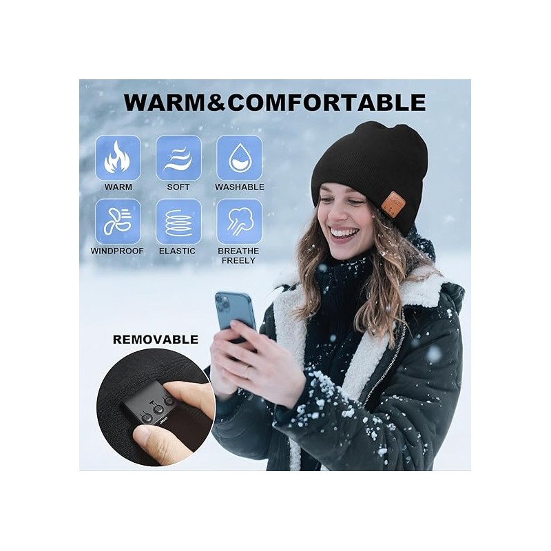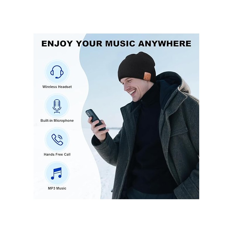 Rotibox Washable Bluetooth Beanie Hat with Wireless Stereo Over Ear Headphones Headsets Earphone Speaker Hands Free