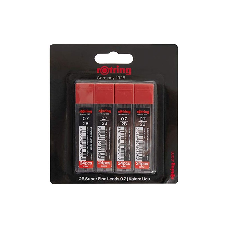 Rotring 0.7 mm 2B Super Polymer Pencil Lead Refills for Mechanical Pencils - 96 Leads in Total - Pack of 4 Tubes