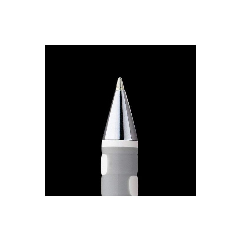 - The writing instrument has a durable metal clip and a chrome-plated push button at the head end