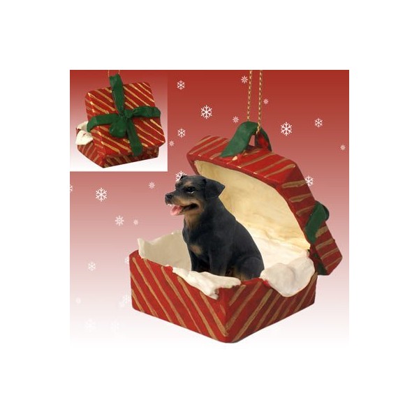 ROTTWEILER Dog in a Red Gift Box Christmas Ornament New RGBD11