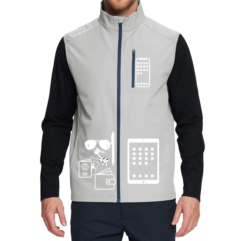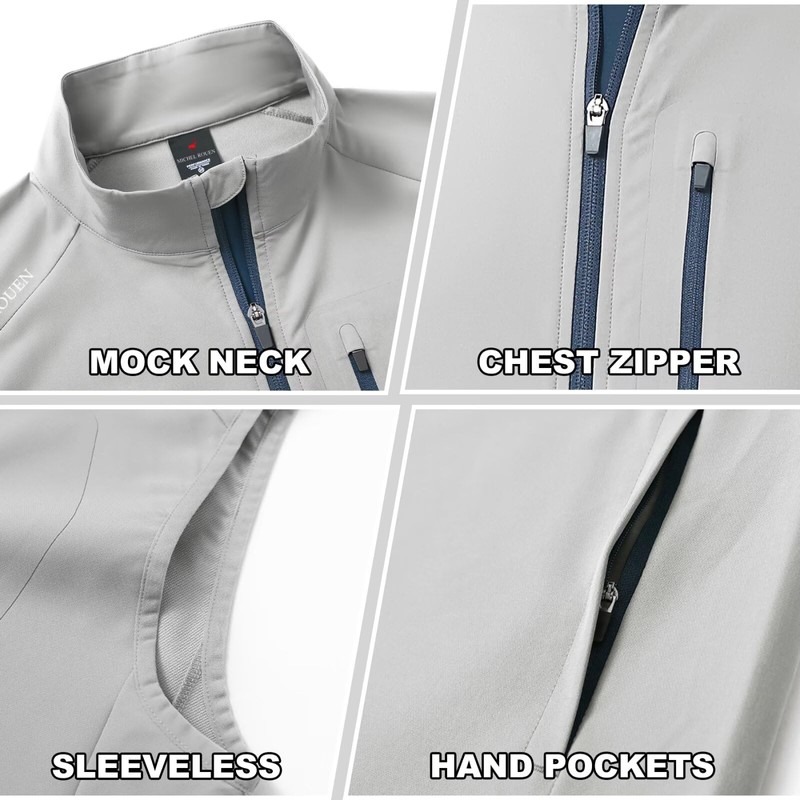 Rouen Golf Vest for Men Lightweight Sleeveless Windproof Travel Pockets Zip Up Softshell Men's Outerwear Vests