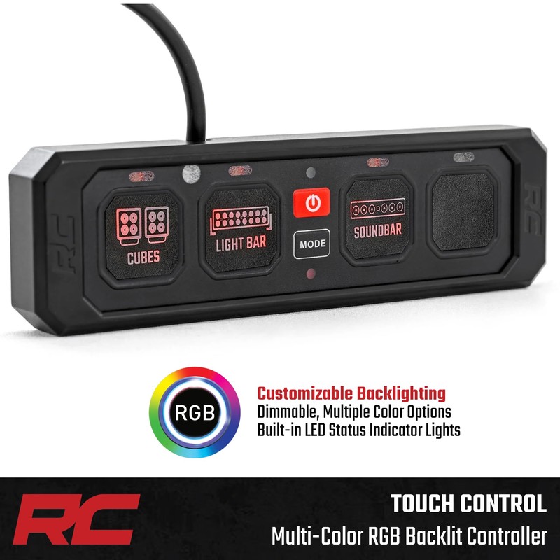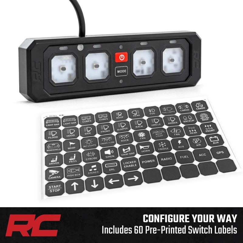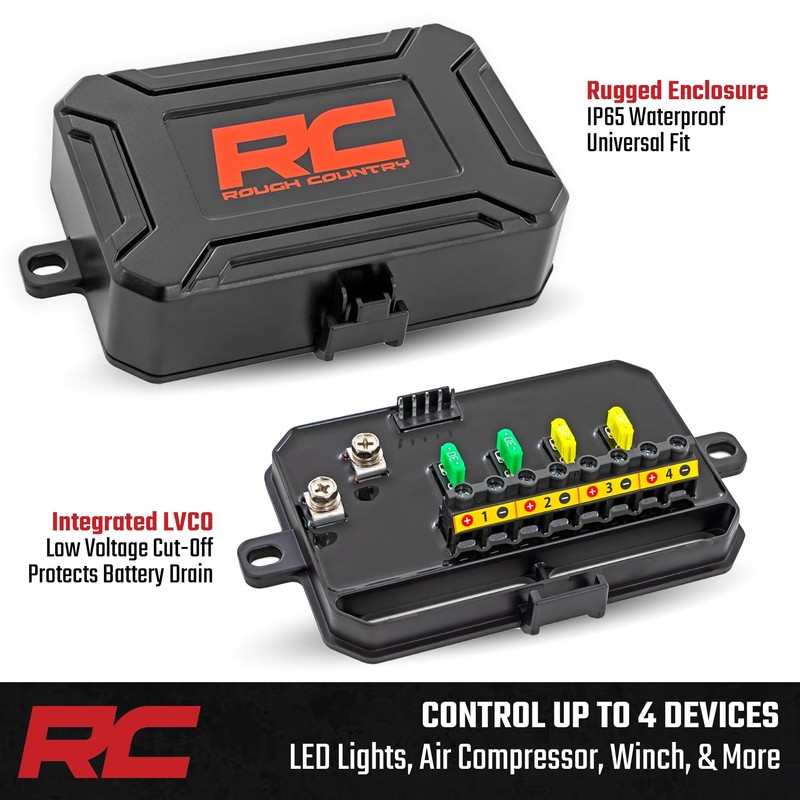 Rough Country 4-Gang RGB Backlit Switch Panel & Relay System - Universal Light & Off-Road Accessory Controller for Truck, Jeeps, UTV, 60A