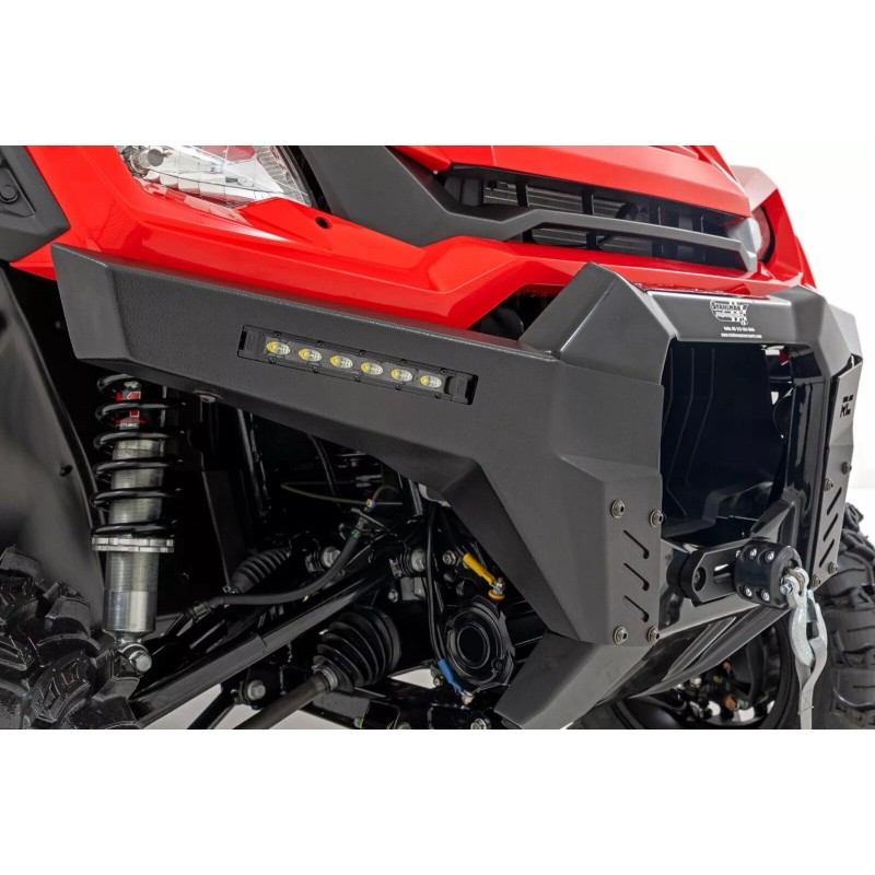 Enhance the look and capabilities of your Honda Pioneer's front bumper with Rough Country's Front Bumper Panels with 6-Inch LED Lights. This innovative add-on installs directly on to the factory bumper giving your UTV a more menacing appearance and additional front-end illumination. These durable 11-gauge steel panels offer a sleek, modern look that extends to the edge of the front end assembly.