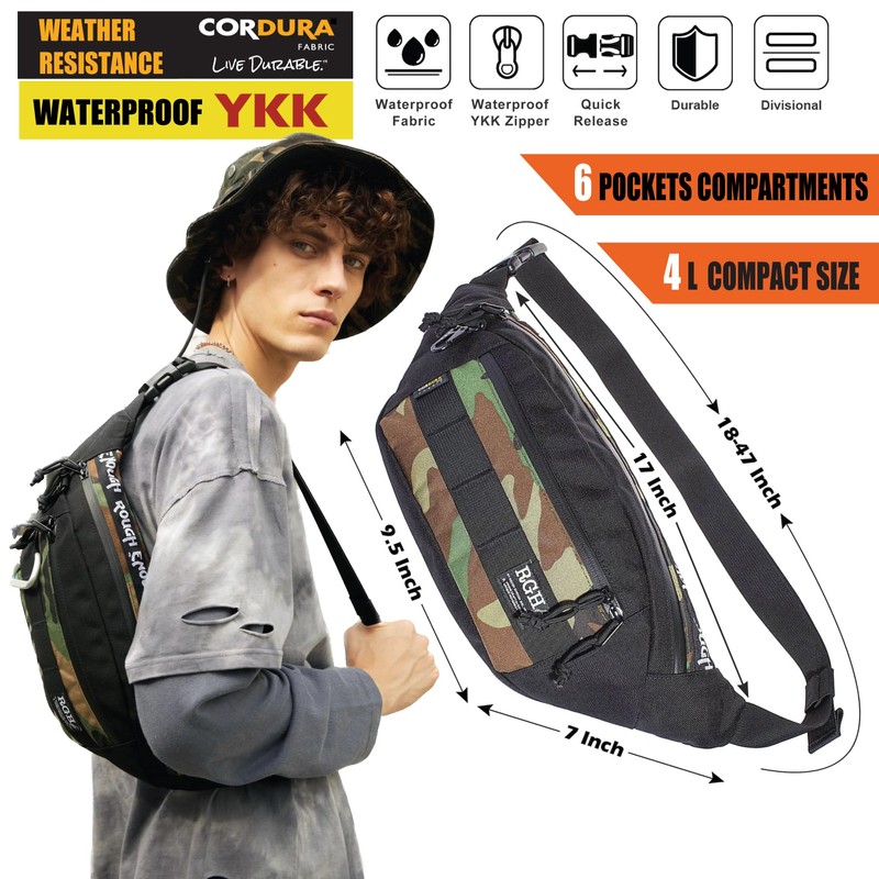 Rough Enough Tactical Fanny Pack for Men Large Waist Bag Crossbody Hunting Hiking Camping Fishing Travel Waterproof Camo Cordura