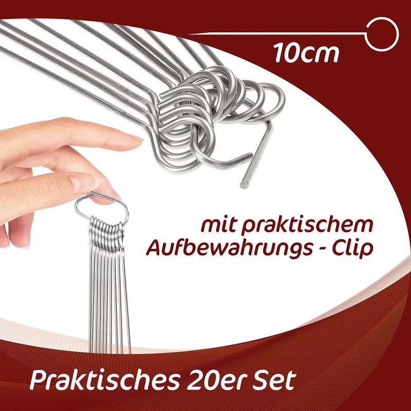 Roulade needles - set of 30, stainless steel - Made in Germany 10 cm roulade skewers with clip - rust-proof, stable for simply delicious roulades