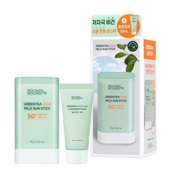 ROUND A'ROUND Greentea Cica Mild Sun Stick 19g Special Set (+Cleansing Foam 30mL) - ROUND A'ROUND Greentea Cica Mi