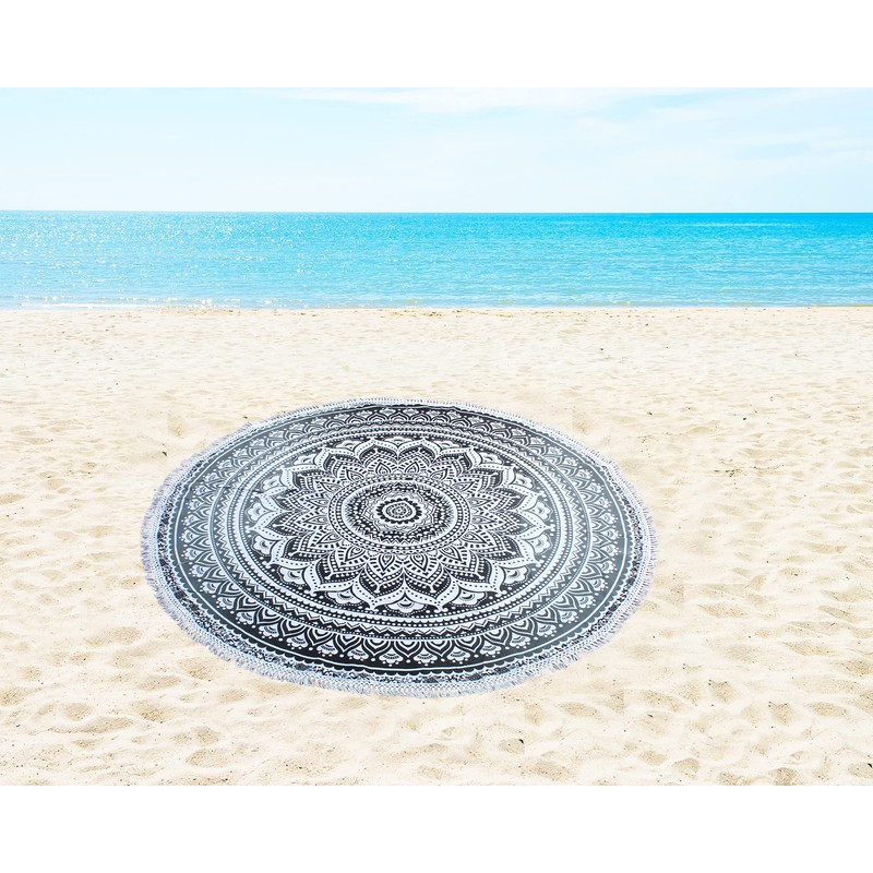 Round Beach Tapestry Mandala Boho Hippie Blanket Indian Cotton Bohemian Large Table Cloth Home Decor Yoga Mat Meditation Picnic Rug Throw Hippy Boho Gypsy Tablecloth Roundie (70 Inches, Grey)