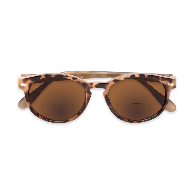 Round Bifocal Reading Sunglasses in Light Tortoise with Amber Lenses by Readers.com | The Drama | +2.50