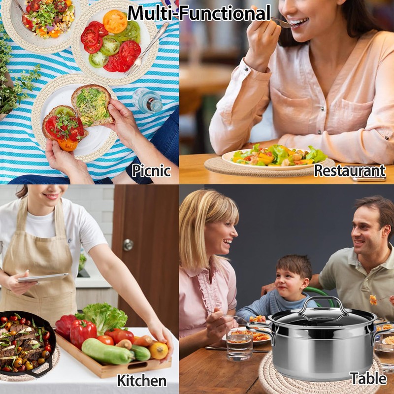 - MULTI-FUNCTIONAL: The trivets can be placed under plates, napkins, pans, and hot dishes, and also can be table centerpieces with cups, tableware, vases, and flower pots. Easy to match different decorative themes at home parties, family gatherings, housewarmings, graduations, weddings, easter, and Christmas.