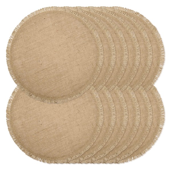 Round Burlap Placemats Set of 12 Jute Rustic Place Mats for Dining Tables Heat Resistant Natural Farmhouse Table Mats Decor for Thanksgiving (Tassel)