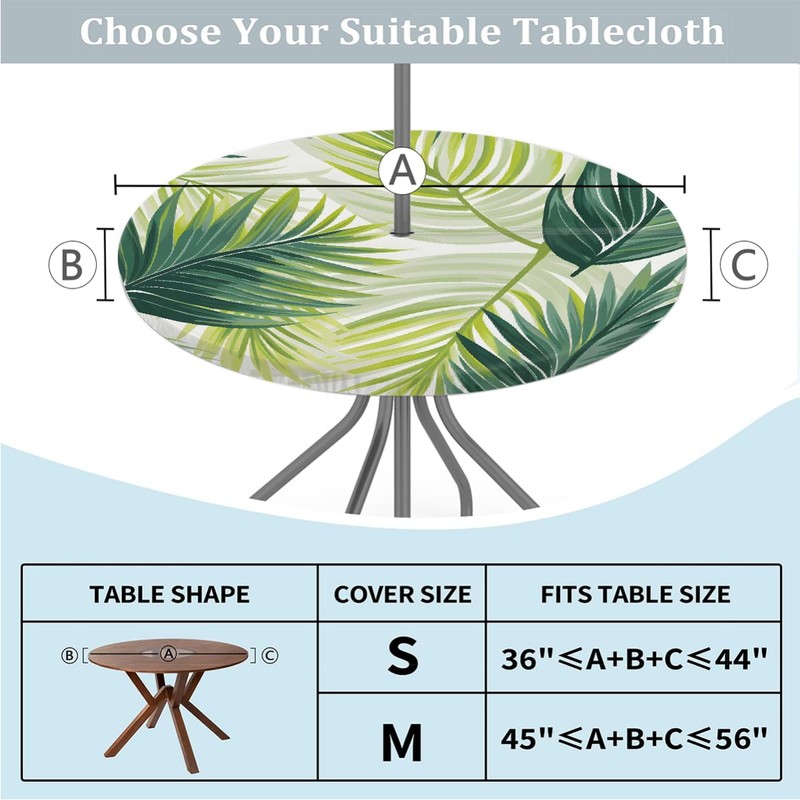 - 【Perfect Fit】: The outdoor tablecloth has elastic edges, which is suitable for the round table with a diameter of 45-56 inches. It fits the round table perfectly, and does not need a tablecloth clip. The tablecloth will not hang over the edge of the table, effectively preventing the tablecloth from sliding, falling off or being blown over by the wind, and don't worry about others pulling the tablecloth or tripping.