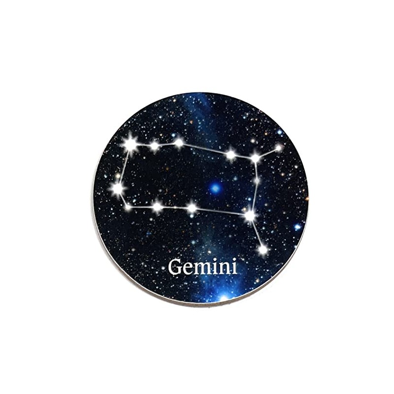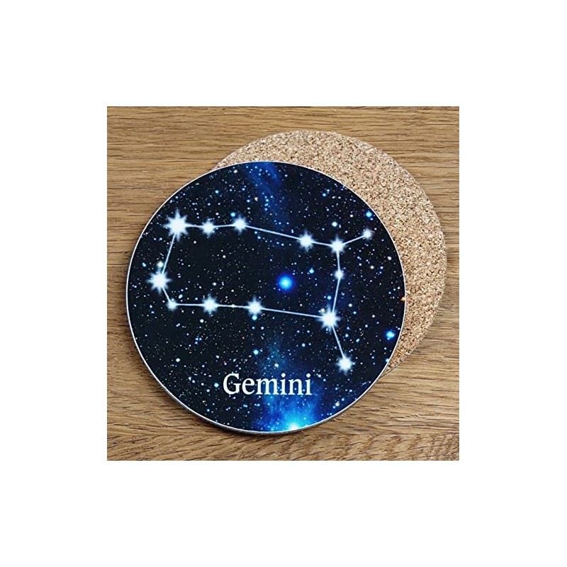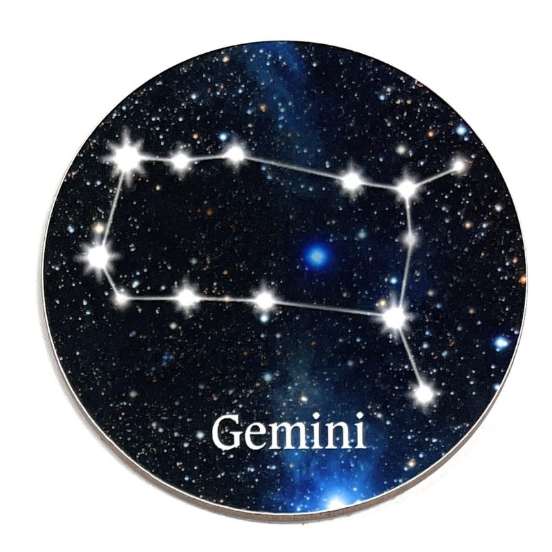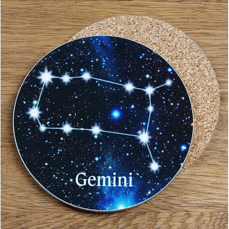 Round Gemini Constellation Glossy Coaster - Unique, Novelty Zodiac Sign/Astrology Birthday Gift - Made in UK