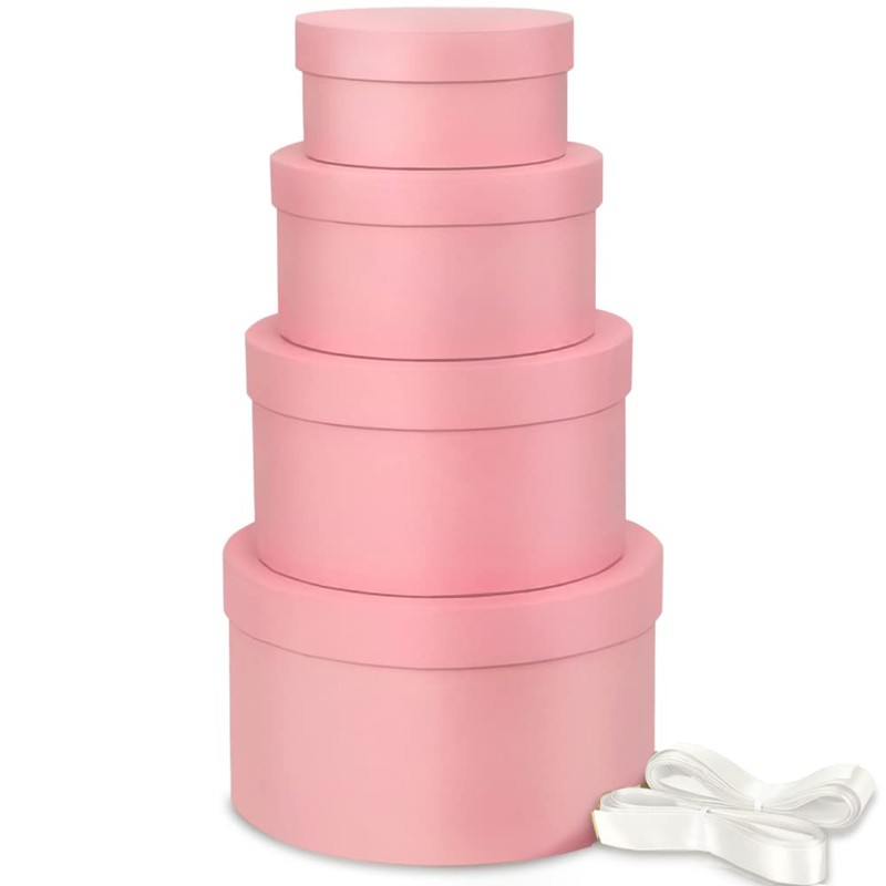 Round Gift Box Pink Gift Boxes with Lids for Presents 4 Packs Luxury Nesting Gift Boxes Small with 17ft Ribbon for Bridesmaid Valentines Mother's day Graduation
