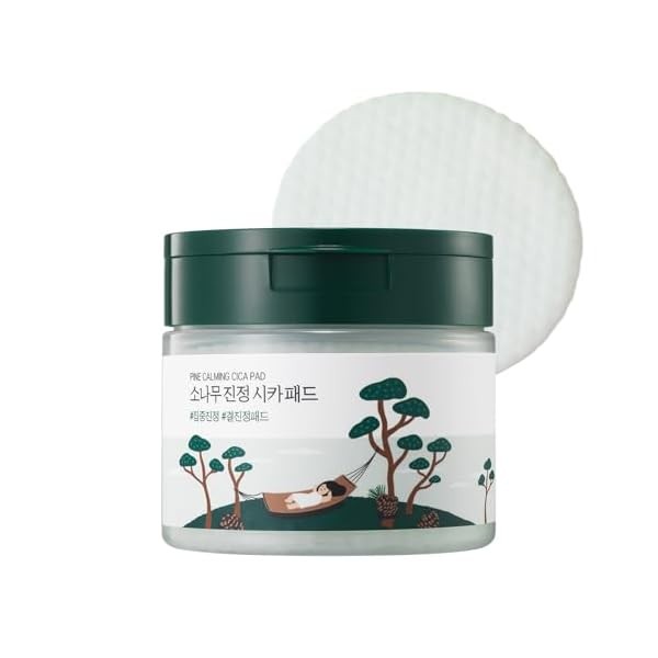ROUND LAB Pine Calming Cica Pad 50pcs, 7cm Wide Cooling and Soothing Toner Pads with Pine Cica, BHA + LHA, and Hyaluronic Acid for Heated, Acne-Prone Skin, Multi-Zone Hydration, Korean Skincare