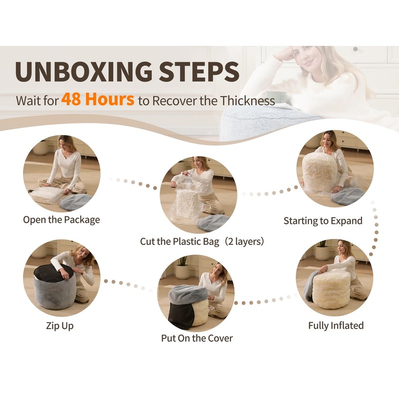 Round Ottoman Foot Rest for Couch 20"x15" Foot Stool Ottoman Pouf with Foam C...