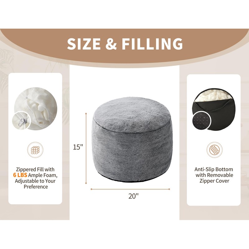 Round Ottoman Foot Rest for Couch 20"x15" Foot Stool Ottoman Pouf with Foam Chunk Filling Small Ottomans Foot Stools Poufs for Living Room Dark Grey Poof Hassocks and Ottomans Soft Foot Rest for Chair