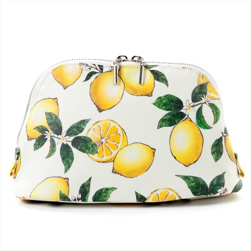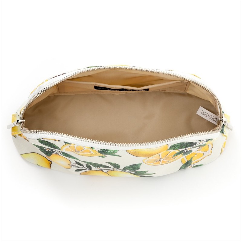 Round Pouch (Large) Citrus Lemon, Lemon Pattern, Botanical Pattern, Fruit Pattern, Makeup Pouch, Portable, Nylon W1001210