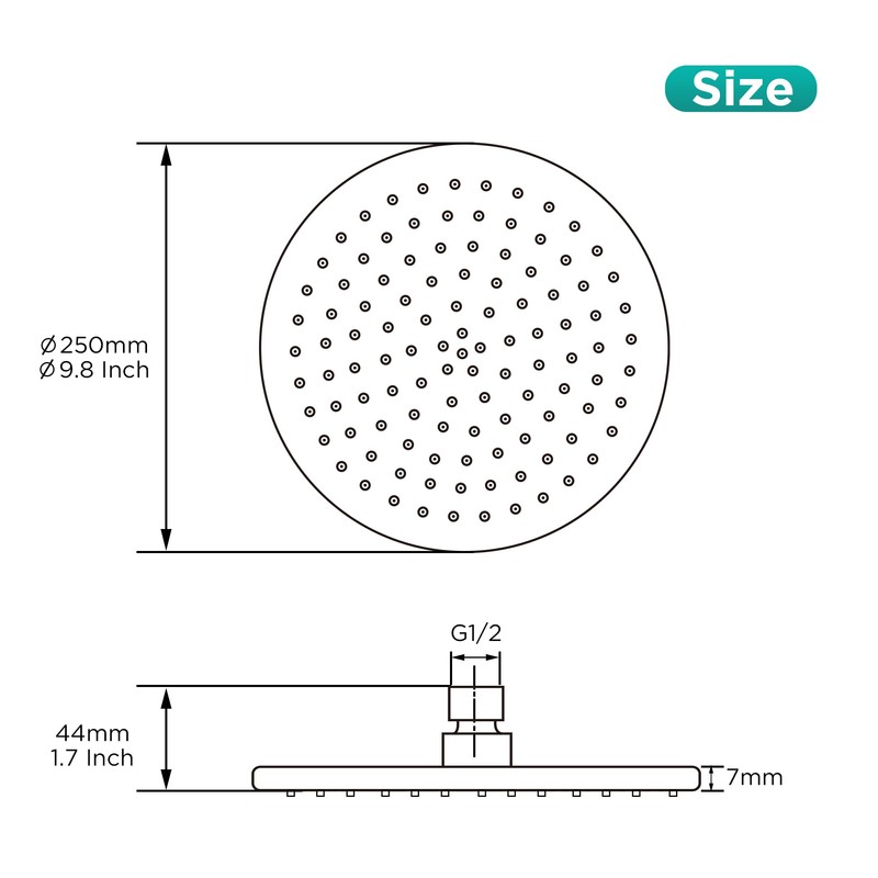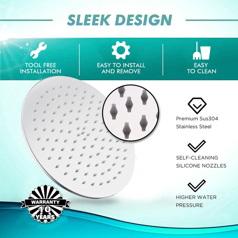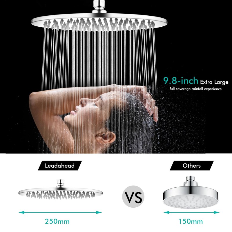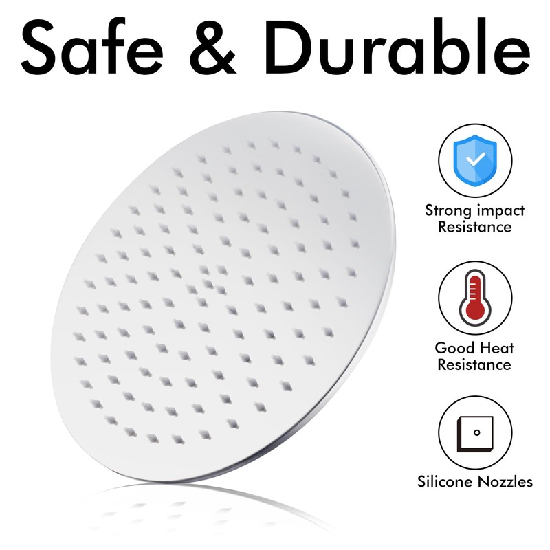 • 【Durable Material】The 9.8-Inch round fixed shower head is made of top quality stainless steel, won't burst due to thermal expansion and contraction, non-toxic, lead-free and rust-free. Highly polished, mirror-like chrome finish making it a beautiful addition to any home decor style.