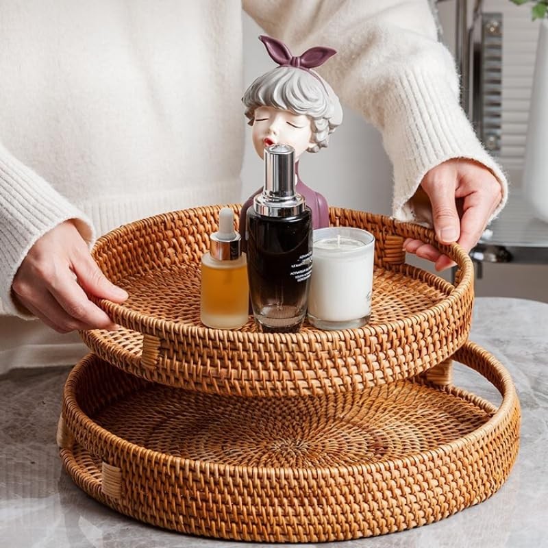 - Multil Functional Tray: The wicker tray is not only suitable to be a serving tray for serving food, fruit, coffee, tea, dessert, bread, cake etc, but also suitable to be a decorative tray to show your candle, vase, small planter, statue and other decorative items. you can use it in living room, bathroom, bedroom, kitchen, coffee table, nightstand table, it is suitable for anywhere in your home.