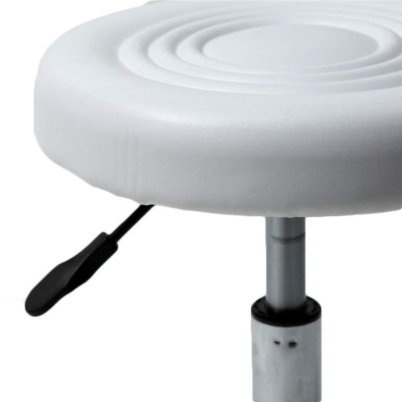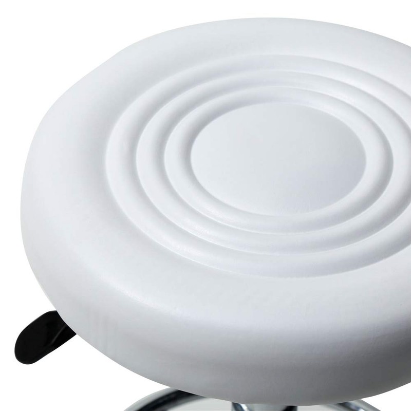 Round Rolling Stool PU Leather Height Adjustable Swivel Drafting Work Tattoo Massage Facial SPA Medical Salon Stools Chair (from US, White-01)