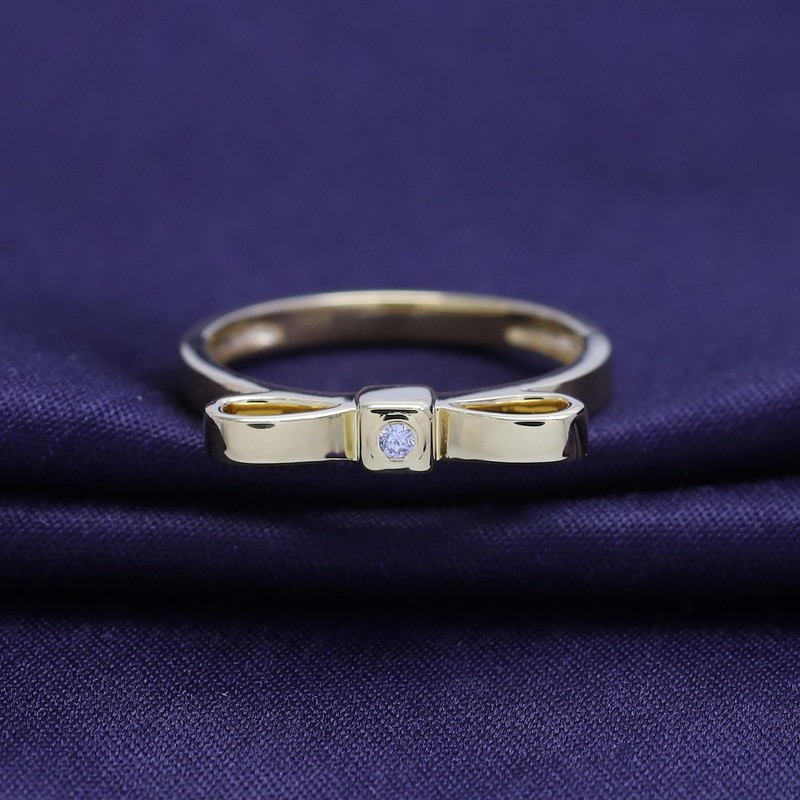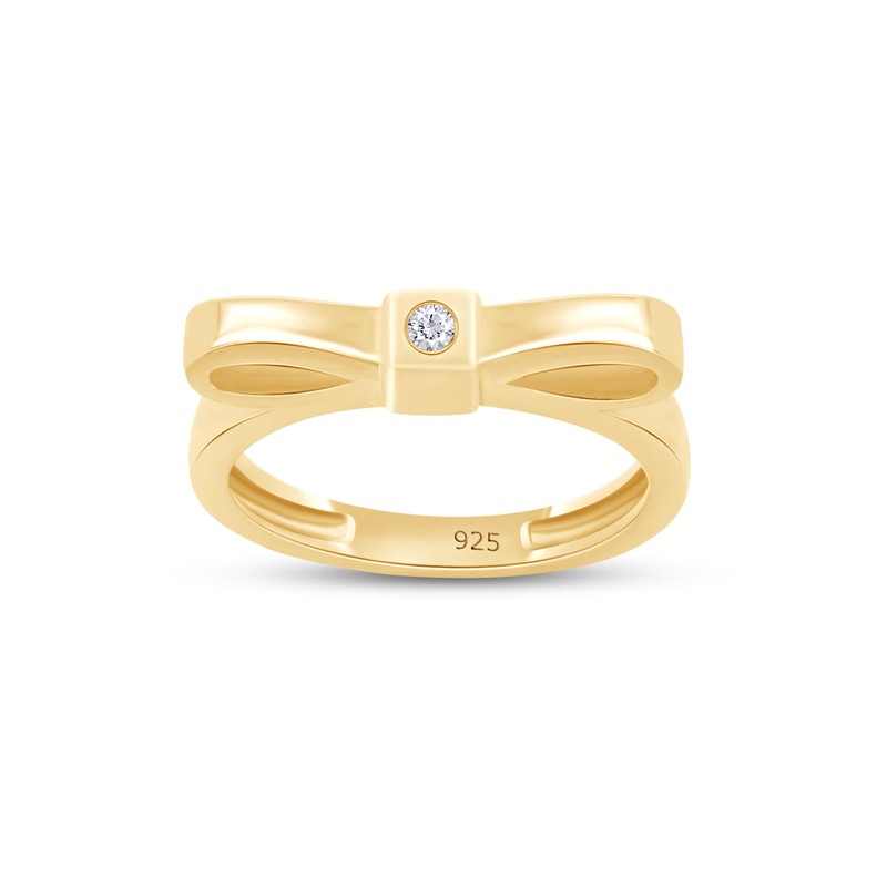 • Adds A Touch Of Nature-Inspired Beauty To Your Look Ribbon Bow Ring In 14k Yellow Gold Over Sterling Silver Makes a Standout Addition to Your Collection With Round Shape White Natural Diamond Accents