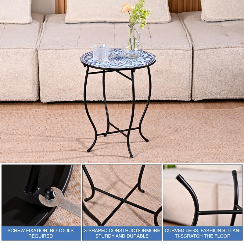 - Perfect Size to Any Space: These patio side tables are perfect for small spaces, making them ideal for balconies, patios, or even indoor use. Their compact size (14" diameter, 17" tall) allows for easy placement and versatility in any area. Screw fastened make it easy assembly and easy moved.