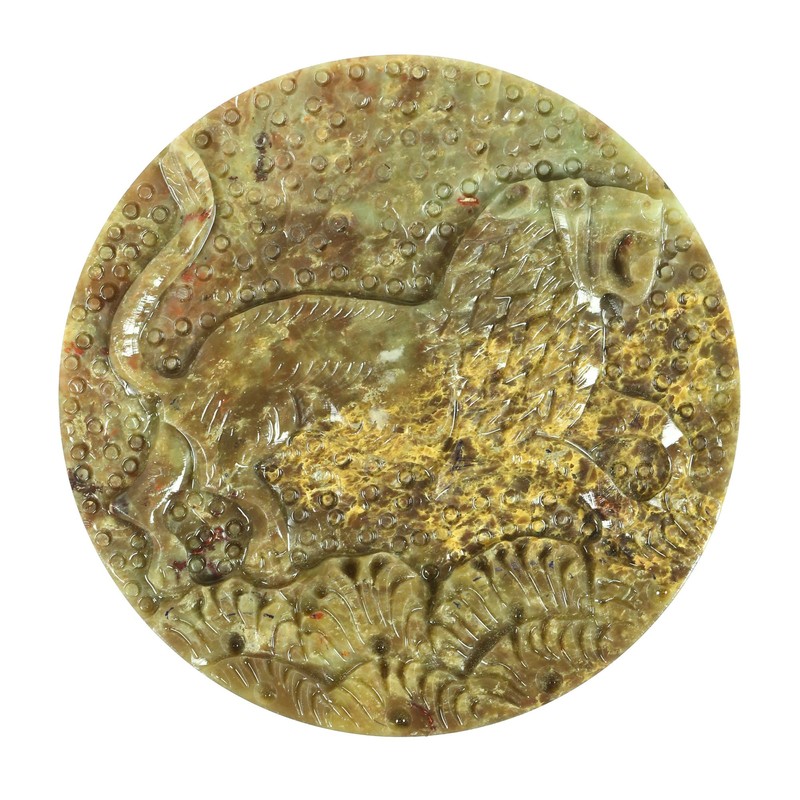 A great way to store your beloved jewellery is in such a wonderfully crafted box made from soap stone. The round shape makes it ideal to keep your earrings or bracelets in a safe place, protecting it from dust or losing it all too easily. Beautiful jewellery deserves a beautiful place to keep it in and this box does this requirement justice. Like a guardian, the lion that has been carved into the lid keeps an eye on your valuable items. To protect your jewellery, the inside of the box is lined with red velvet that has a royal look to it. The inside of the lid has also been lined with it to give it all round protection. Being made from soapstone, the box has a good yet not too heavy weight of approximately 425 g. For the diameter you find 10 cm and the box has a height of 4.5 cm. The inside measures approx. 7.5 cm in diameter and you have a usable height of ca. 2.5 cm.