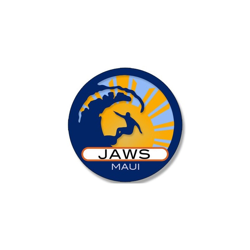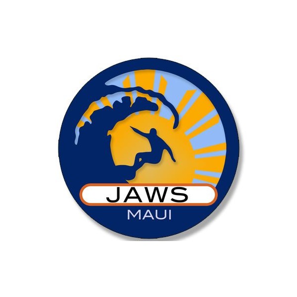 Round Surfer On Wave Jaws Maui Sticker (Surfing surf Retro Beach)