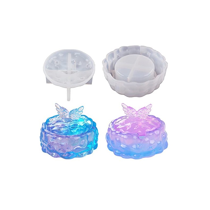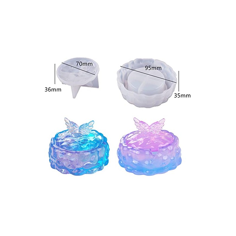 Round Trinket Box Epoxy Mold with Angel Wing Lid DIY Resin Casting Silicone Mold Small Ashtray Mold, Type C