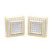 Round White Cubic Zirconia Men's Square Stud Earring In 14K Yellow Gold Over Sterling Silver