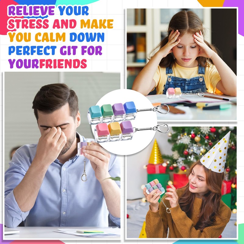 - Stress Relief: this stress relieving fidget keychain pack toys is not only a toy, but also a practical tool to relieve stress and calm you down; When you press the fingertip toy, it will make a crisp clicking sound, just like the sound you hear when using a keyboard, which is applied to soothe anxious people, release stress, and relax