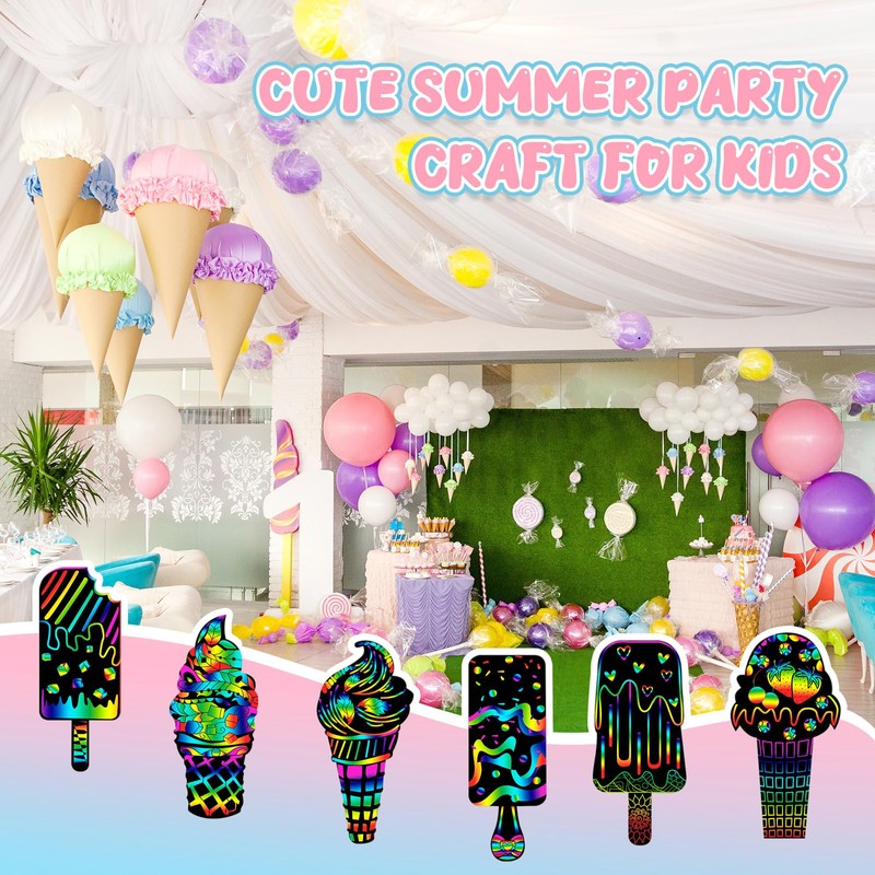 RoundFunny 60 Pieces Ice Cream Scratch Cards Rainbow Summer DIY Scratch Card Art Ice Cream Ornament Scratch Crafts Card for Kids Birthday Party Classroom DIY Activities