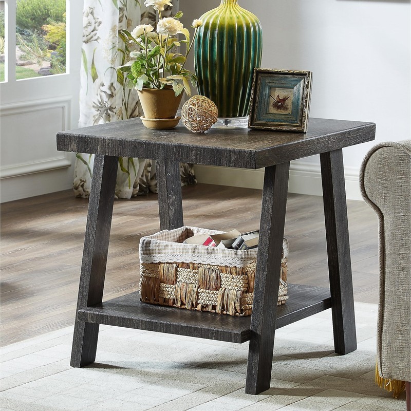 Roundhill Furniture Athens Contemporary Replicated Wood Regular End Table, Weathered Walnut and Gray