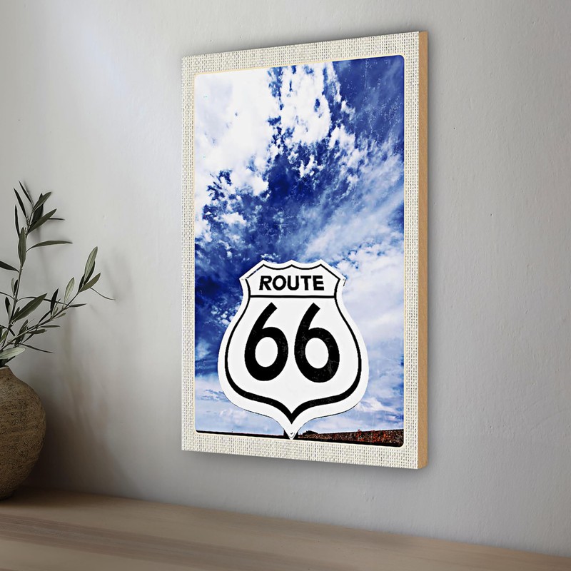 Route 66 Holzschild | Nostalgie | Retro-Stil | Wanddeko | Vintage | 12 cm x 18 cm