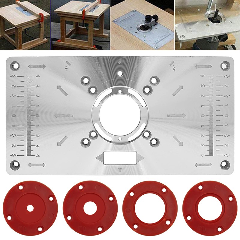 Router Table Plate,Trimming Machine Flip Board Woodworking, Aluminum Alloy Insert Plate Router Table with 4 Rings and Screws, for Woodworking Benches 235mm x 120mm x 8mm (Silver+red)