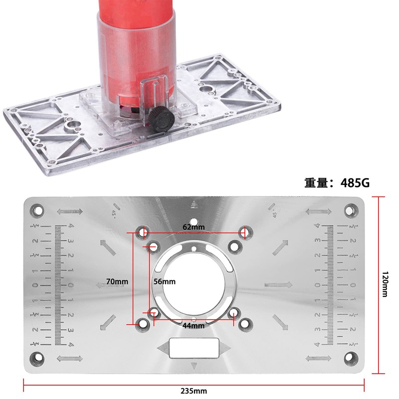 - The size of the router workbench board is 235mm x 120mm x 8mm / 9.3"x 4.7"x 0.3", and the hole distance is 62 * 70mm. (The size on the picture shall prevail)